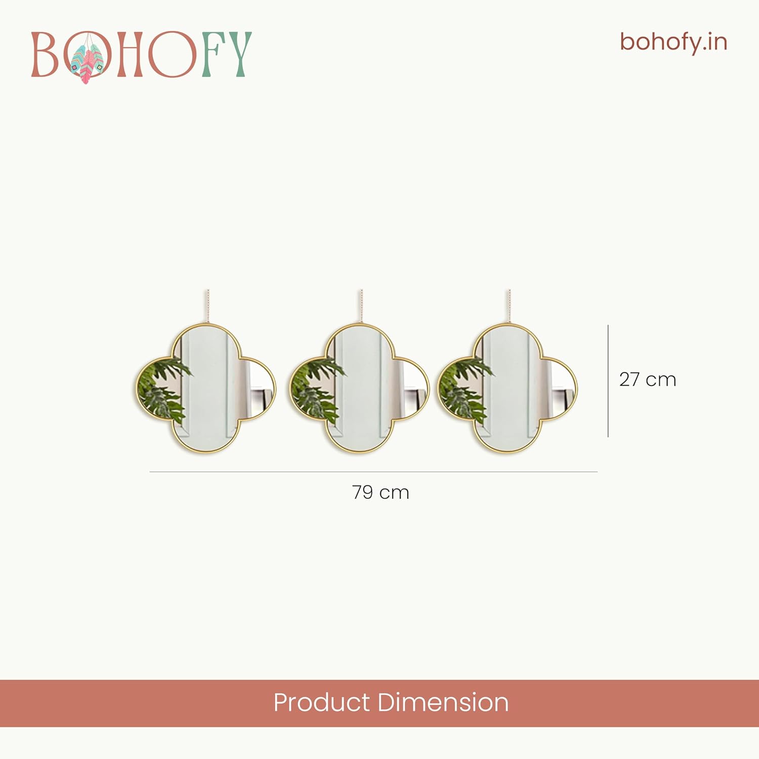 - Set of 3 pcs clover aesthetic mirror with gold finish. This Aesthetic Wall Mirror with Gold Finish, the perfect blend of functionality and elegance.